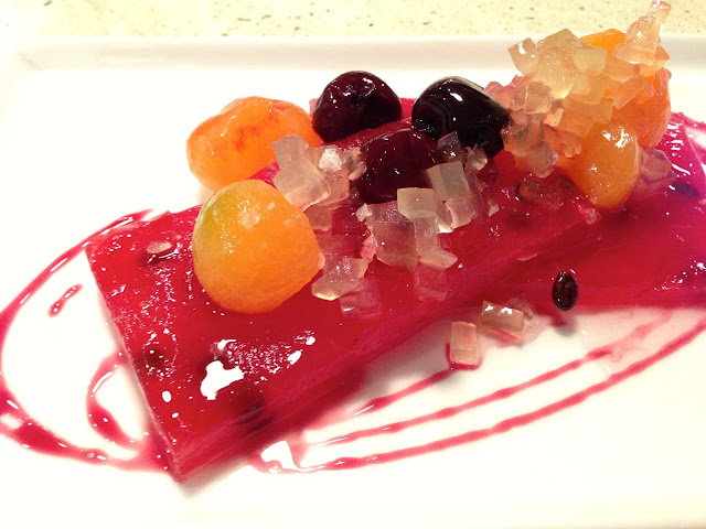 We chose the melon appetizer, which included water melon, cherries and cantalope that had been vacuum-sealed