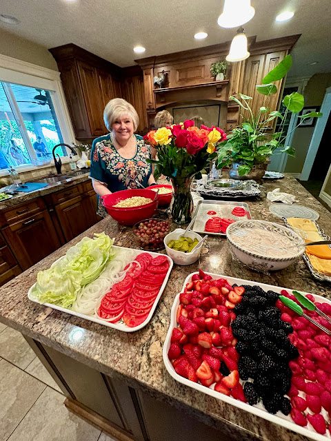 We cooked hamburgers with all of the fixings and everyone brought lots of yummy salads and desserts.